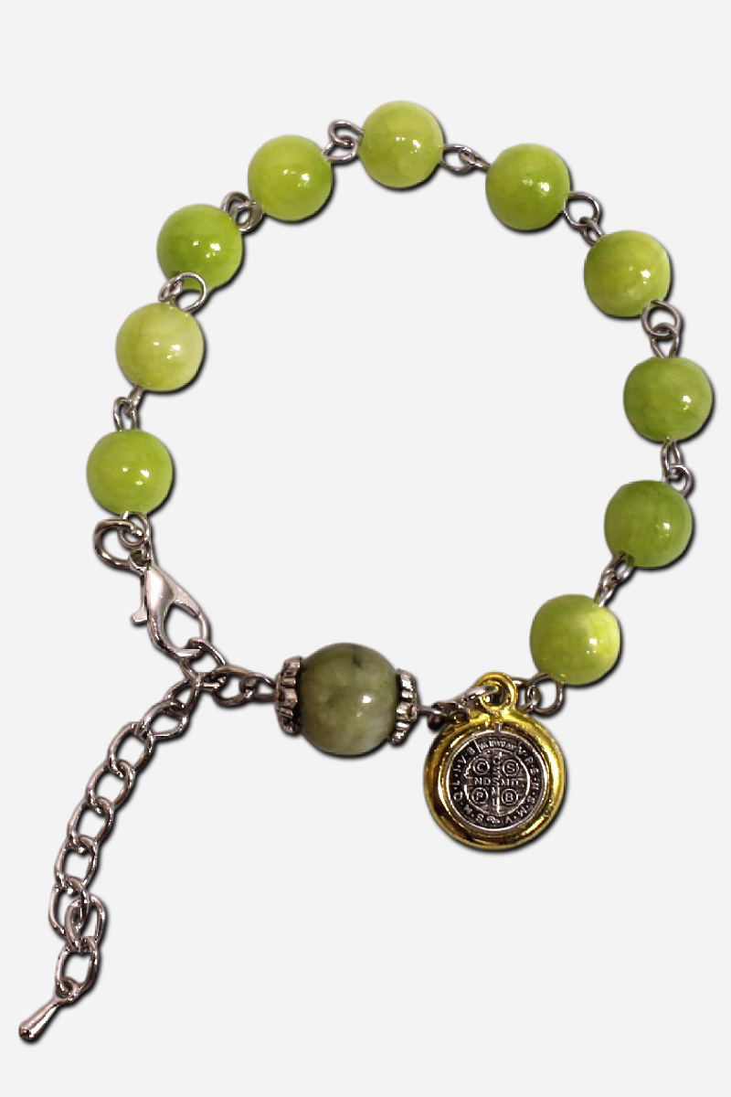 Bracelet Rosary – Saint Benedict Medal – Apple Green