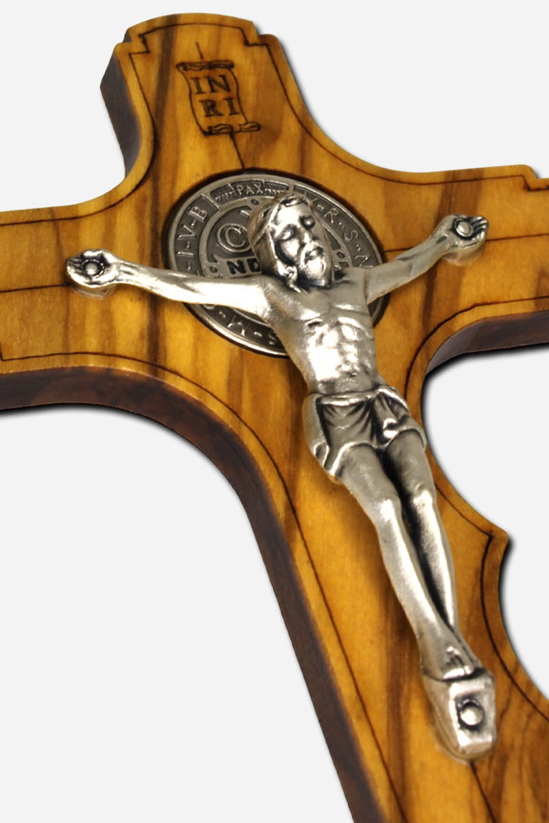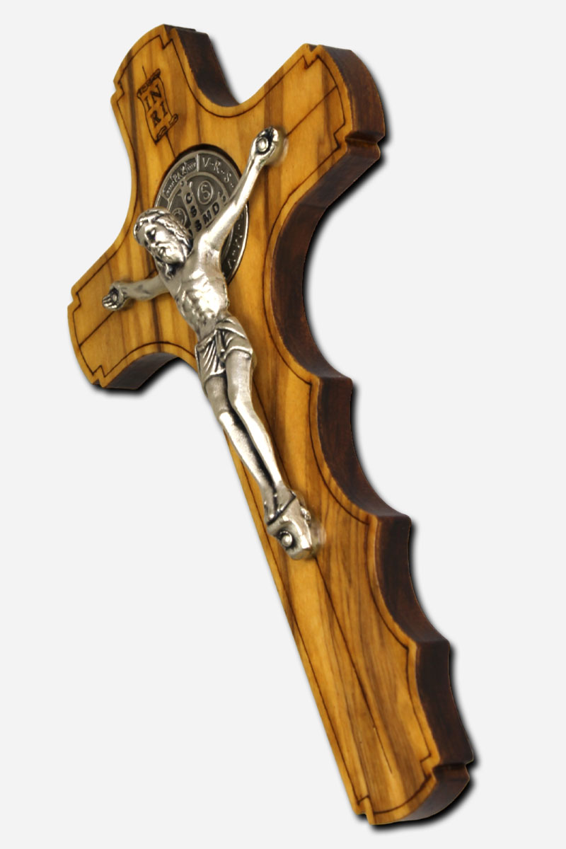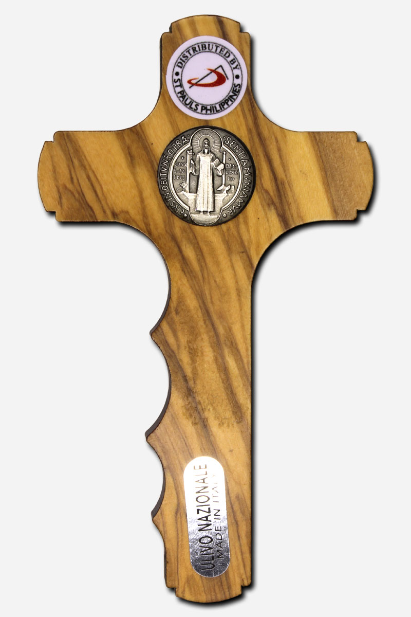 Holding Cross with Saint Benedict Medal 12cm – Olive Wood Italy