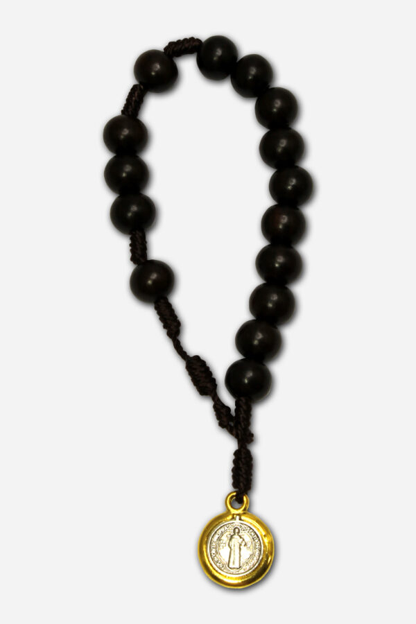 KNOTTED KAMAGONG BRACELET WITH SAINT BENEDICT MEDAL – 8 MM BEADS