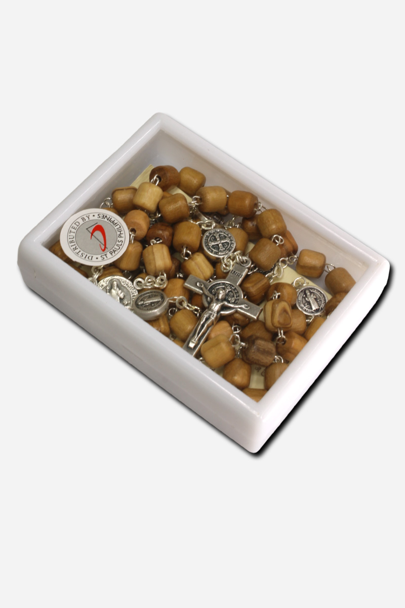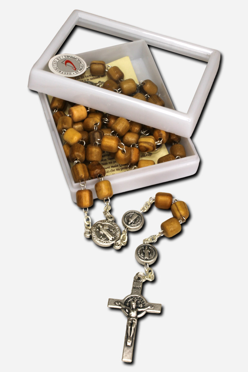 Olive Wood Rosary with Saint Benedict Medal – Brown Made in Italy