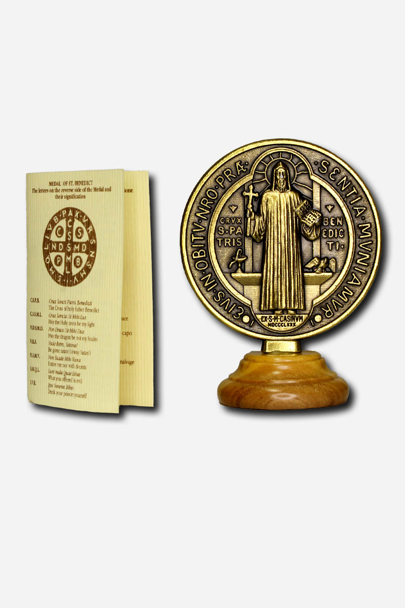 Saint Benedict Medal with Stand – ROUND BIG 7 cm