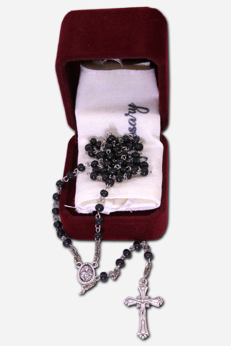 SMALL WOODEN BEADS ROSARY BLACK –