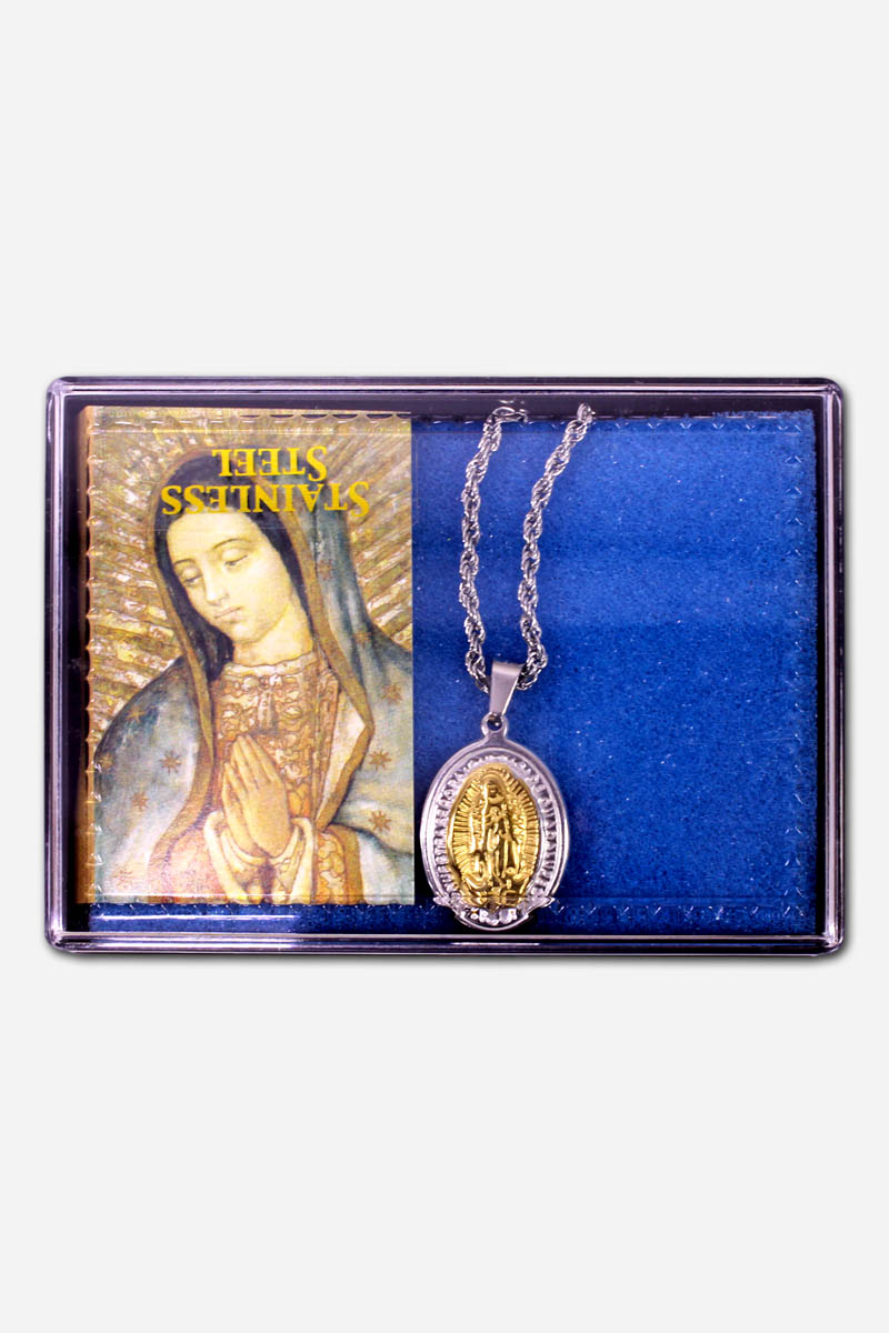 Two Tone Stainless Steel Necklace – Our Lady of Guadalupe – 20 x 3 x
